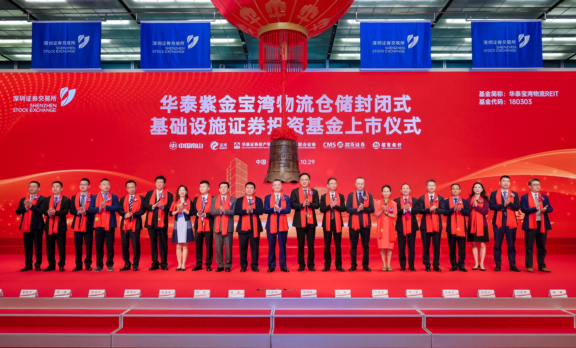 10月29日上午,華泰紫金寶灣物流倉儲封閉式基礎設施證券投資基金(基金代碼180303,基金簡稱“華泰寶灣物流REIT”)上市儀式在深圳證券交易所上市大廳舉行。